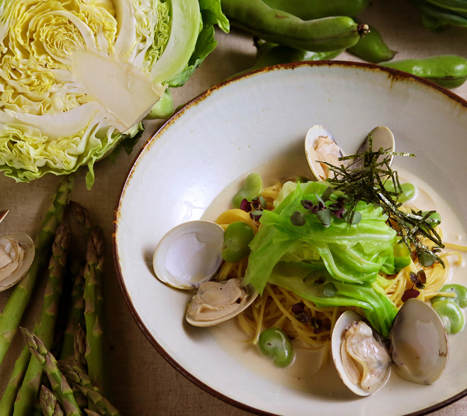 蛤の旨みと春のキャベツの甘さが口の中に広がります。