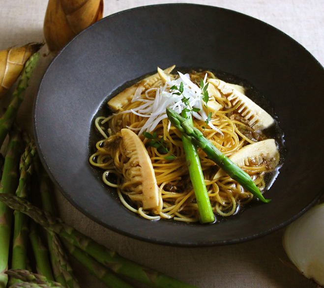 「ふき味噌が香る 筍とアスパラのぱすた 醤油風味」 1180円(税抜)