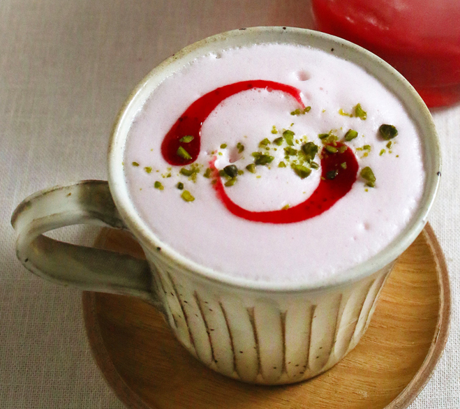 苺ピューレとミルクで仕上げたふんわりホットドリンク。