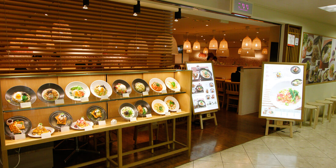 阪急梅田駅直結の老舗ショッピングエリア「阪急三番街」、その南館地下2階にあるこなな。