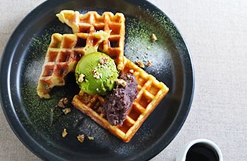 豆乳ワッフル 抹茶アイスと十勝産小豆