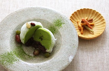 自家製抹茶アイスとかのこ豆の大福